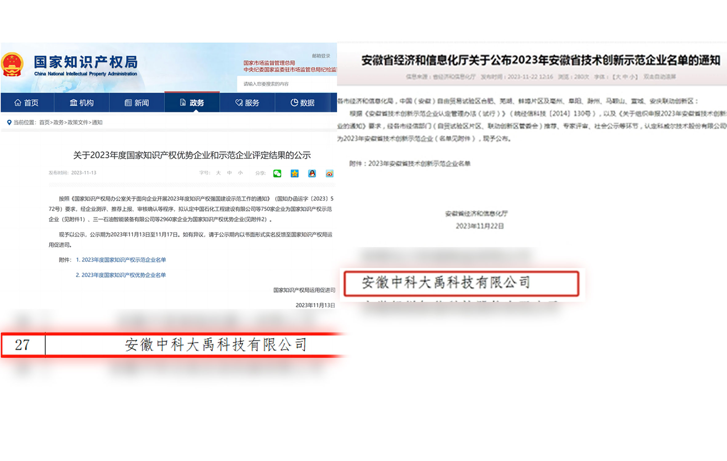 評(píng)定為2023年度國(guó)家知識(shí)產(chǎn)權(quán)優(yōu)勢(shì)企業(yè) 入選2023年安徽省技術(shù)創(chuàng)新示范企業(yè)名單